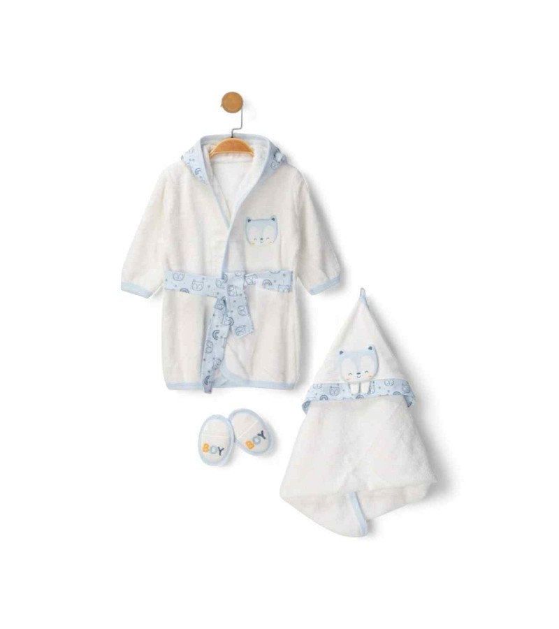 Βρεφικό σετ μπάνιου  αποτελούμενο από όλα τα απαραίτητα πετσετάκια για το καθάρισμα του βρέφους ύστερα από την καθημερινή ρουτίνα μπάνιου ή φαγητού. Αποτελεί ιδανική και πρακτική επιλογή δώρου.