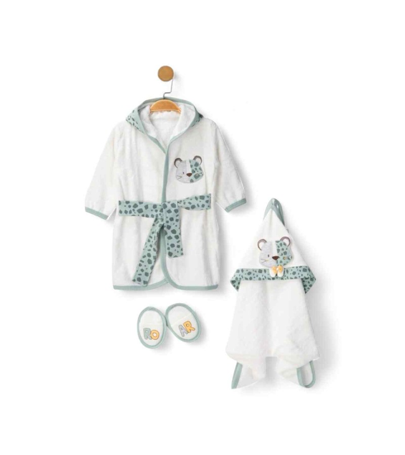 Βρεφικό σετ μπάνιου αποτελούμενο από όλα τα απαραίτητα πετσετάκια για το καθάρισμα του βρέφους ύστερα από την καθημερινή ρουτίνα μπάνιου ή φαγητού. Αποτελεί ιδανική και πρακτική επιλογή δώρου.