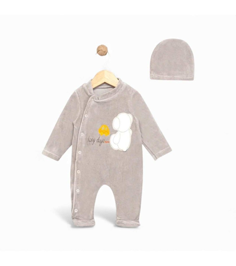 Βρεφικό Φορμάκι Βελουτέ & Σκουφάκι Μπεζ