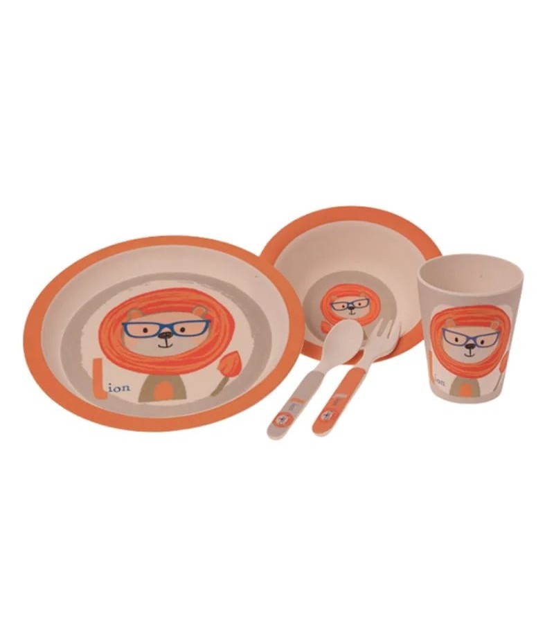 Χαριτωμένο παιδικό σετ φαγητού με σχέδιο λιονταράκι, ιδανικό για να κάνει τα γεύματα των παιδιών πιο διασκεδαστικά. Το σετ περιλαμβάνει: Πιάτο, μπολ, ποτήρι, κουτάλι, πιρούνι.