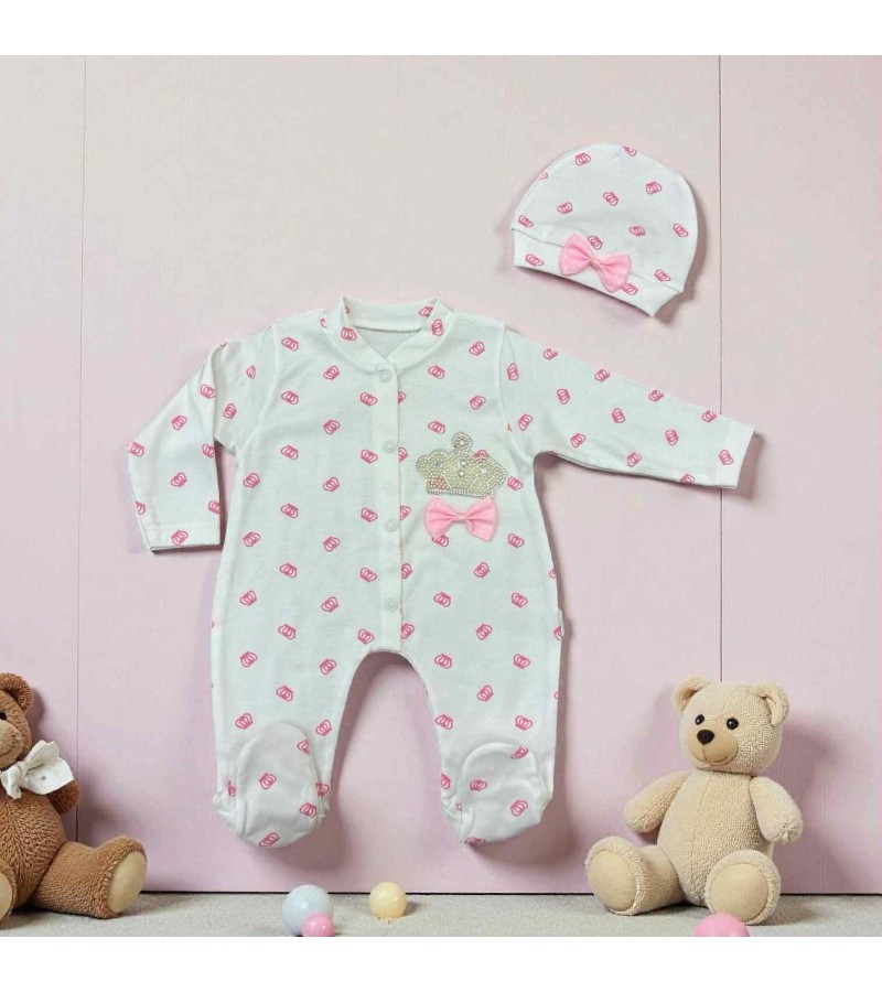 Βρεφικό Φορμάκι Interlock & Σκουφάκι Κορώνες