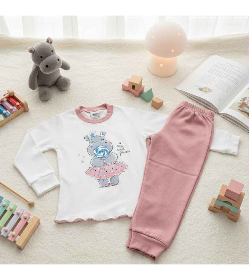 Παιδική Πυζάμα Χειμερινή Τύπωμα Hippo