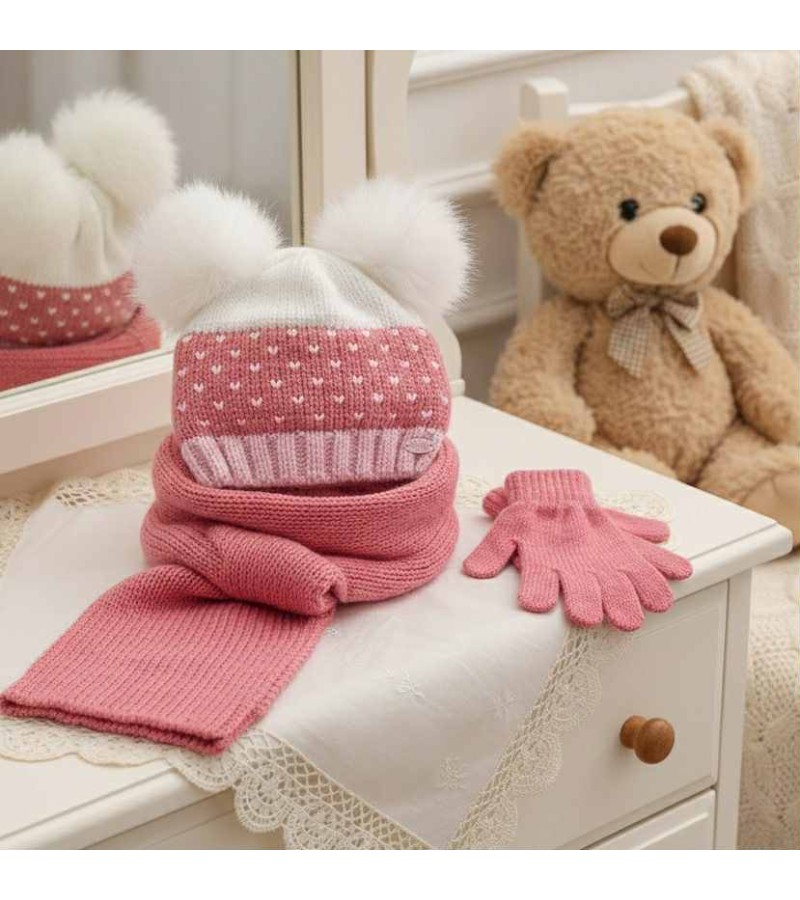 Σετ Σκουφάκι-Γάντια-Κασκόλ Ροζ
